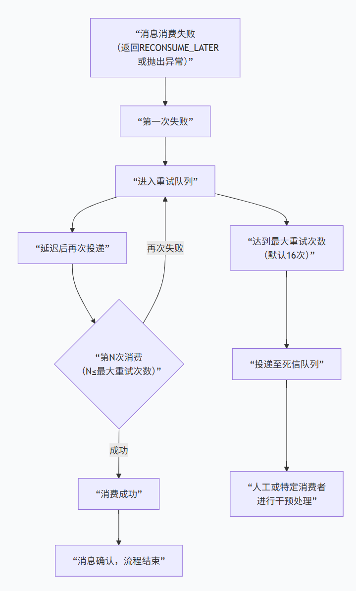 本质:重试队列是一个逻辑上的、特殊命名的Topic,由Broker进行特殊管理和调度,以实现延迟重试的功能。