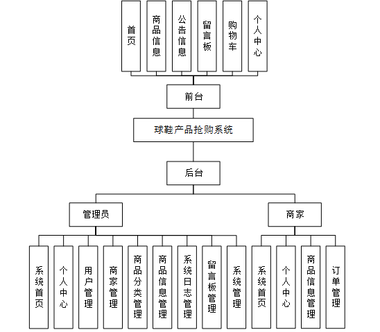 根据上文中对用户需求的一系列综合细致的分析,针对本球鞋产品抢购系统,得到一个如图4-1所示的宏观的总体功能结构图。