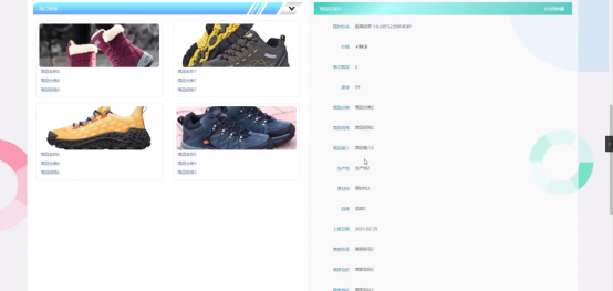 商品中心:品牌/系列/鞋款三级分类、SKU多规格(尺码、配色)、图文详情、相册轮播、定时上架。