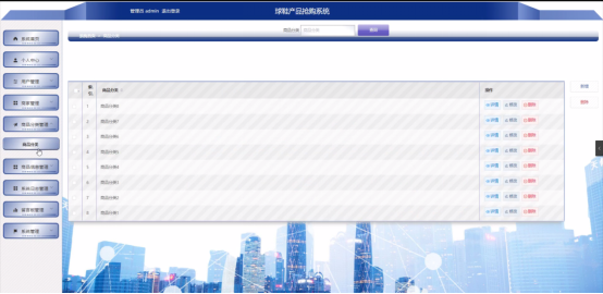 管理员点击商品分类管理。在商品分类页面输入商品分类进行查询、新增或删除商品分类列表,并根据需要对商品分类详情信息进行详情、修改或删除操作;如图5-9所示: