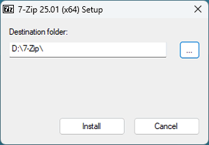 笔者使用的是 Windows 64 位操作系统,接下来以 7z2501-x64.exe 安装包为例,手把手教大家安装 7-Zip,另外 2 个版本的安装过程也是类似的。 1) 下载 7z2501-x64.exe 安装包,双击启动它,弹出下图的窗口