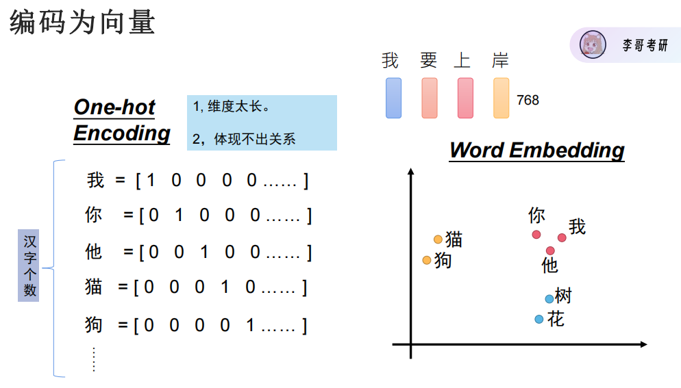 文字编码为向量可以用数据表示文字,但是无法表示文字之间的关系,比如你我他应该关系近,无法用数据表示。