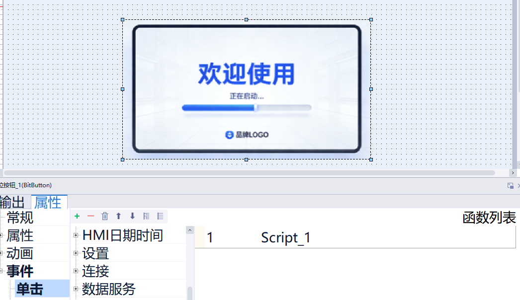 选中位按钮,在属性,事件,单击,用户脚本,选择Script_1