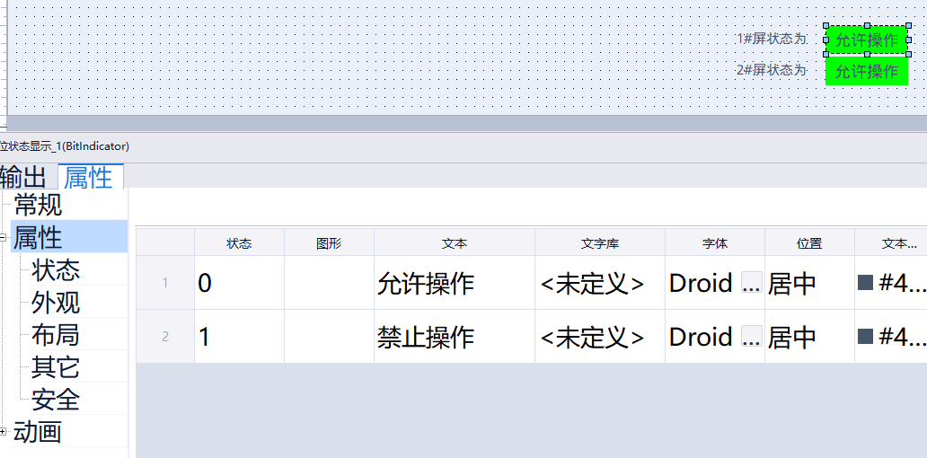 我们可以把状态的文本改成0状态:“允许操作”;1状态:禁止操作。
