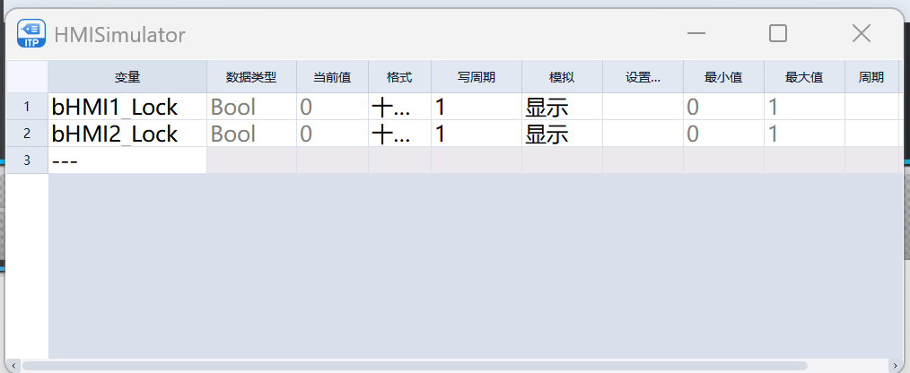 2:在AutoShop全局变量,新建变量表,添加变量分别为布尔型的bHMI1_Lock和bHMI2_Lock。然后编译,导出HMI监控变量表,方便后面触摸屏导入变量。