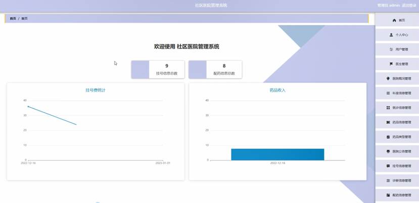 该系统基于 Java 语言、SpringBoot 框架和 MySQL 数据库开发,采用 B/S 架构与 Vue 前端框架。核心功能涵盖用户管理、医生管理、科室信息管理、就诊信息管理、药品信息管理、挂号信息管理、诊断信息管理等模块。管理员统筹系统运营,维护医生与科室信息;医生可接诊挂号、开具诊断与药方;用户可在线挂号、查询诊疗记录。系统支持在线挂号预约、病历电子化管理、药品分类检索,简化社区医院诊疗流程,提升服务效率与诊疗质量,适用于各类社区医院的数字化管理。