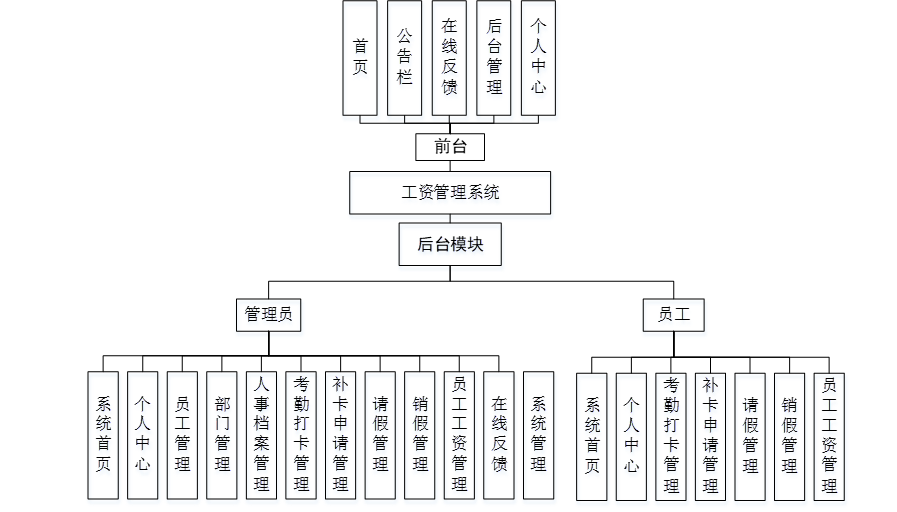 工资管理系统主要有管理员和员工两个功能模块。以下将对这两个功能的作用进行详情的剖析。