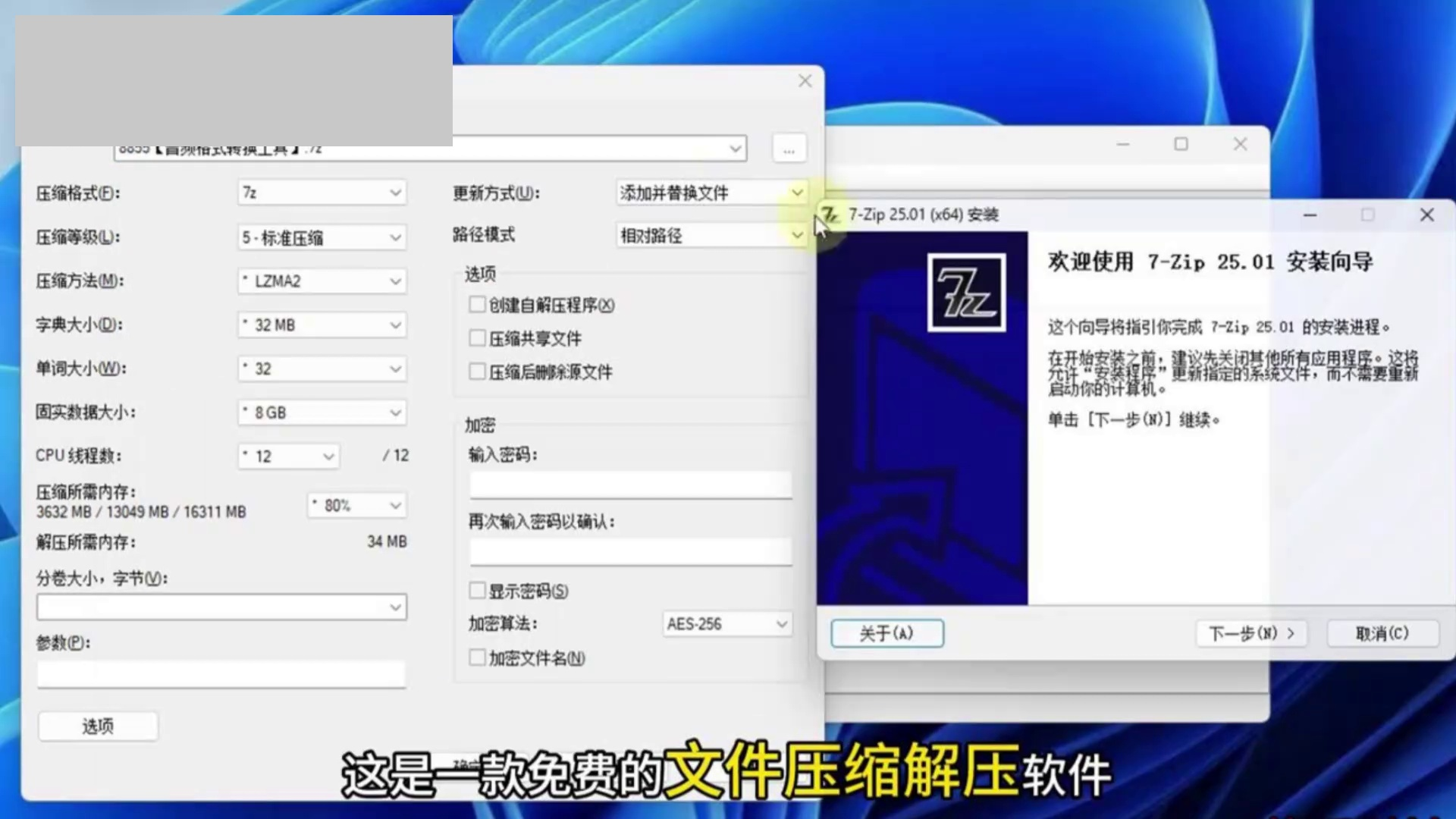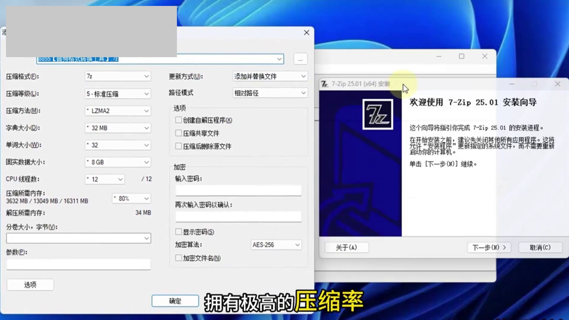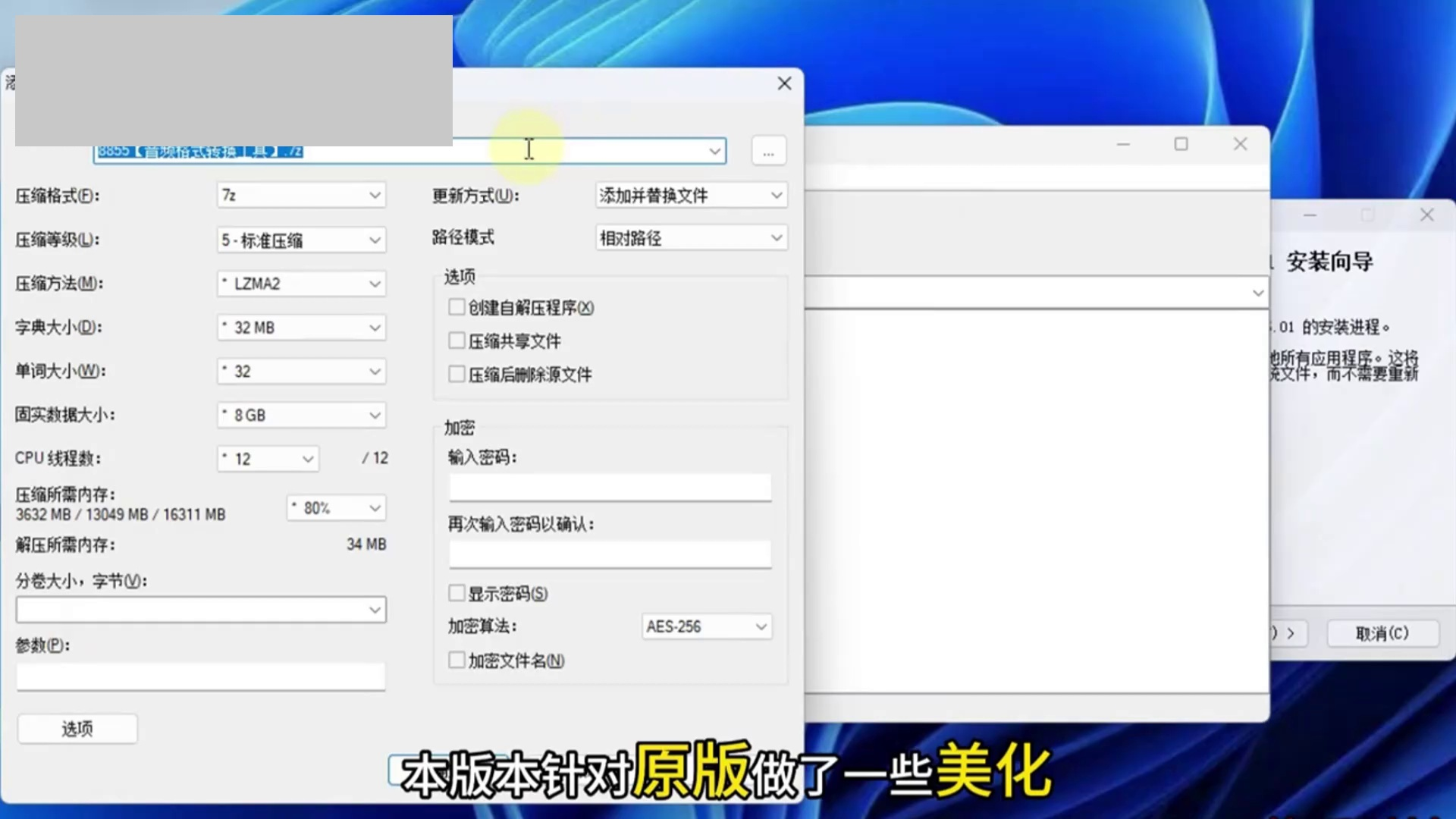 设置压缩格式(如7Z或ZIP)、压缩等级等参数。