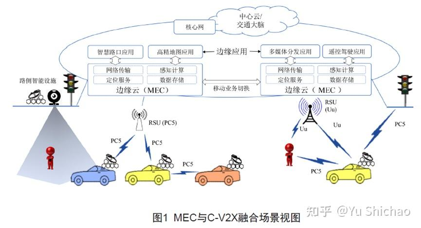 2. RSU + MEC:给路灯装上“大脑” 早期的 RSU 只是一个“传话筒”(把红绿灯信号广播出去)。现在的 RSU 是“智能体”,这离不开 MEC(多接入边缘计算)。
