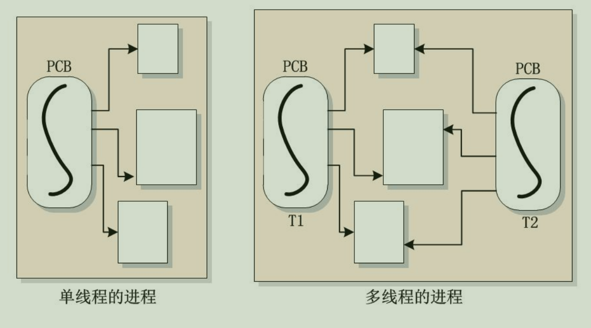 对于右边,可以看到有两个 PCB 结构体共享很多资源,而一个 PCB 对应系统中的一个