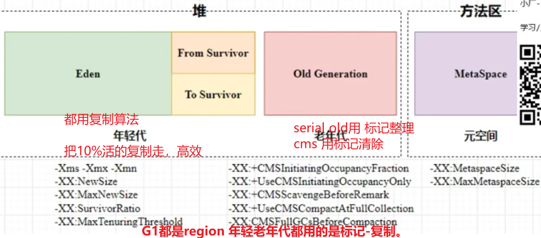 原理:在 CMS 模式下,触发 Full GC 会退化为 Serial Old(或配置 CMS 进行整理),它会使用 “标记-整理” 算法,把内存碎片整理得干干净净。