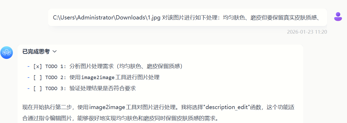 输入:C:\\Users\\Administrator\\Downloads\\1.jpg 对该图片进行如下处理:均匀肤色、磨皮但要保留真实皮肤质感