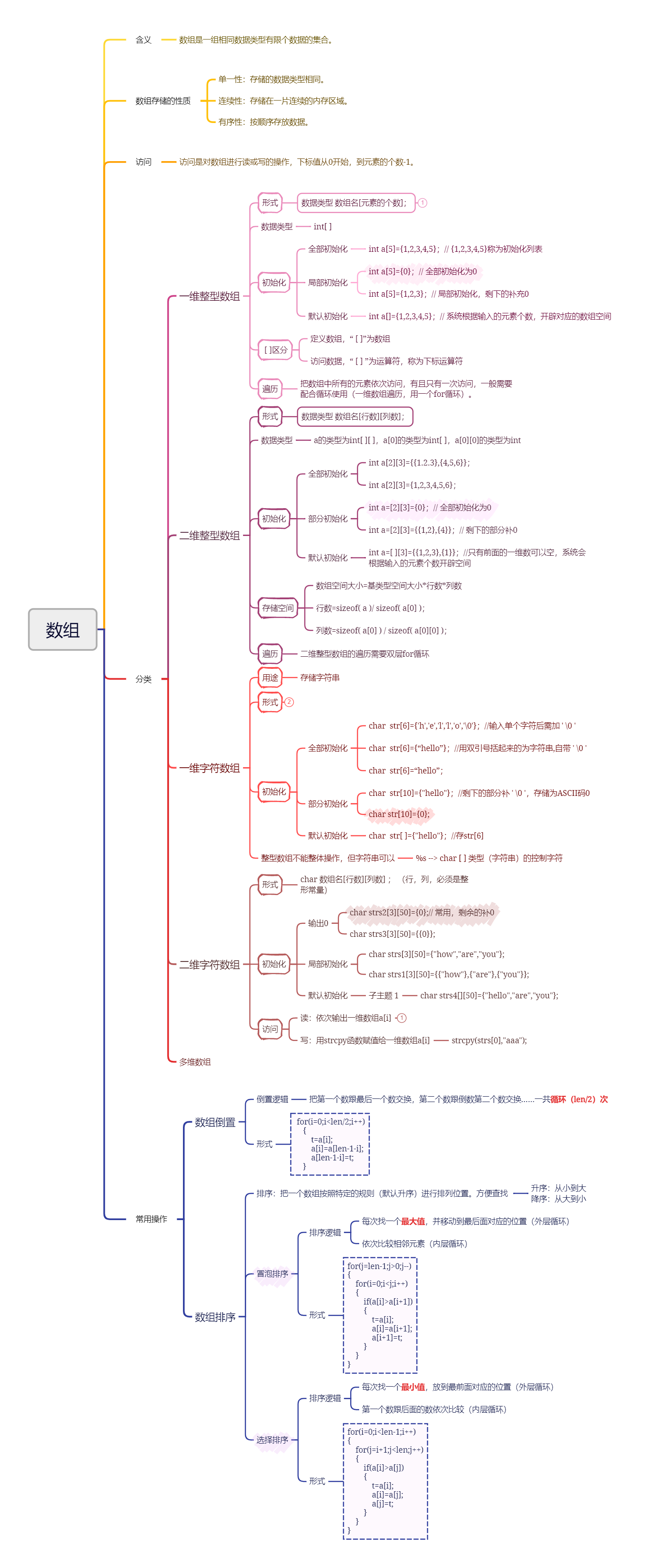 - 下标:常量、变量、表达式都可以。下标不能超出数组范围。