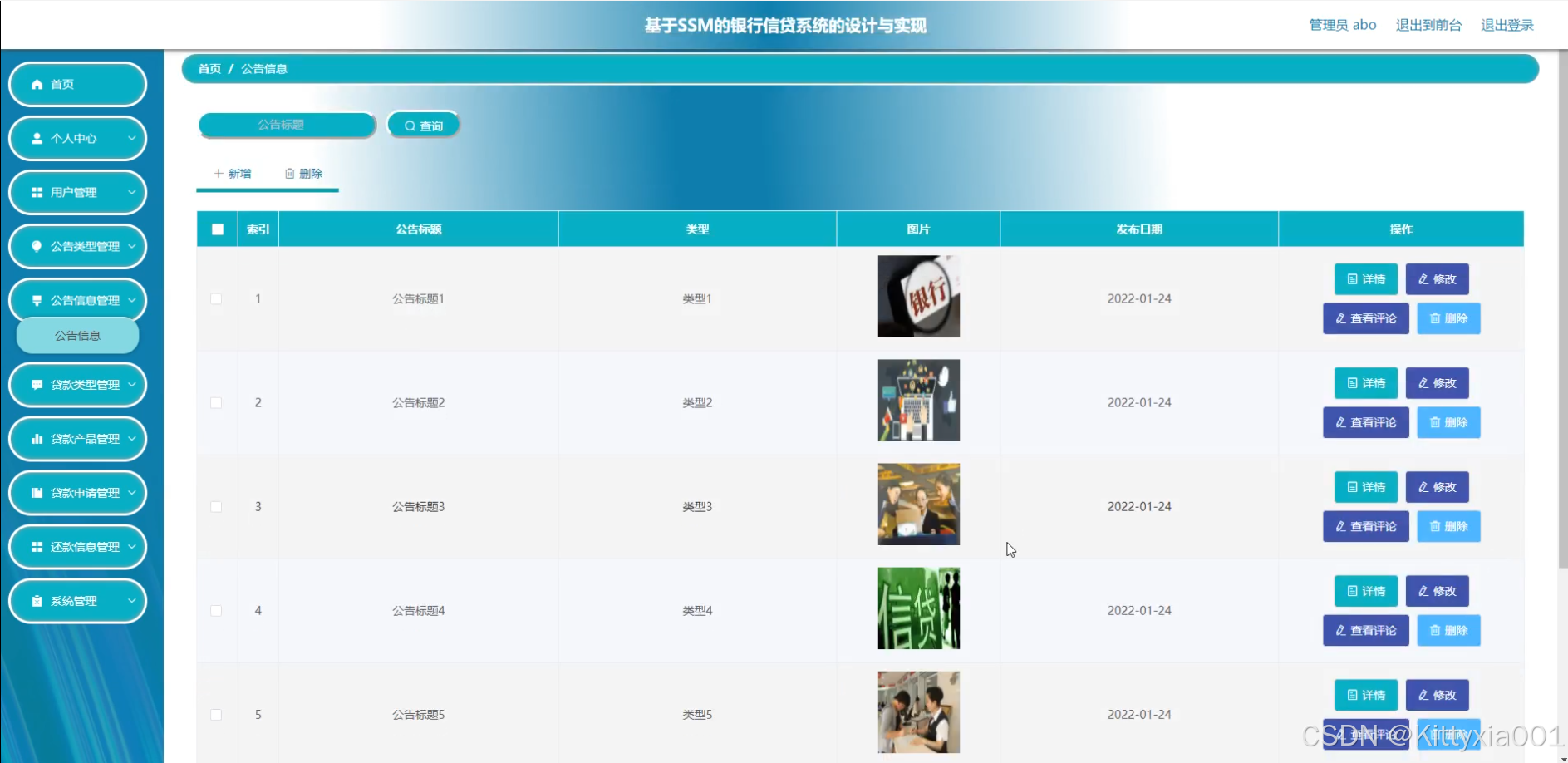 本系统主要包括客户管理、信贷申请管理、信贷审批管理以及系统管理四大模块。客户管理模块负责用户信息的录入与维护;信贷申请管理模块用于接收和处理客户的信贷申请;信贷审批管理模块则根据预设的规则和算法对申请进行审批;系统管理模块则负责整个系统的配置与维护。