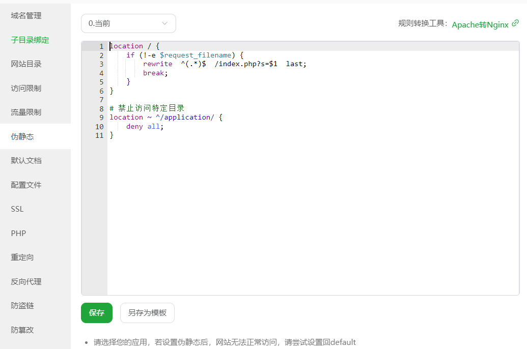 rewrite ^(.*)$ /index.php?s=$1 last;