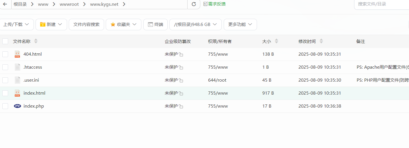 然后单击根目录下,我们编写一个index.php进行测试服务器是否正常访问。