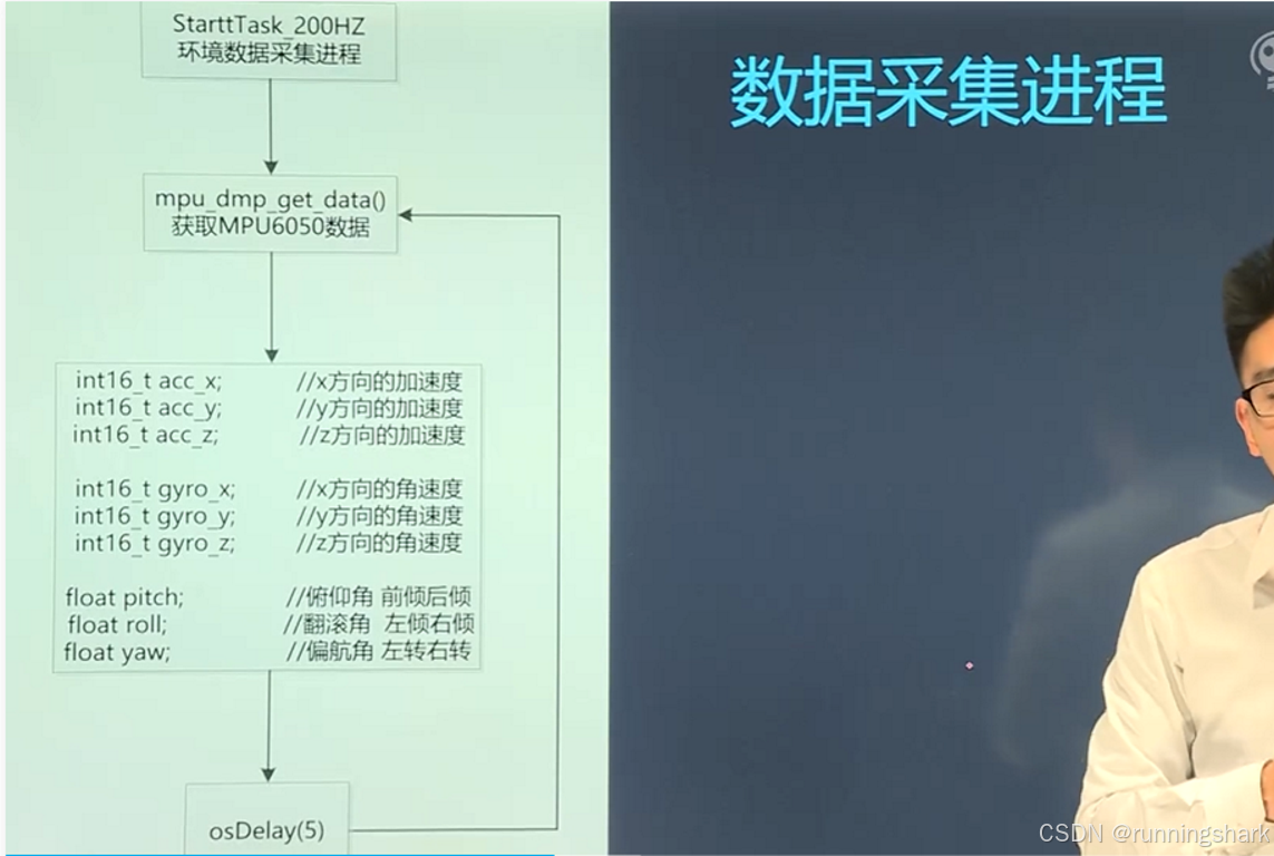 上式中左边的g_fAngle为实际得到的角度;Angle_ax为角加速度换算后的角度值,因为角加速度受车体震荡等因素会产生高频噪声,所以对其进行低通滤波,滤除高频信号,因此融合系数较小;右边的g_fAngle可以理解为上一次的角度;GY是角速度,dt是时间,GY *计算dt时间段内通过的角度,通过对角度的不断积分得到一个较为准确的角度,可信度和融合系数较大,有点类似高通滤波。