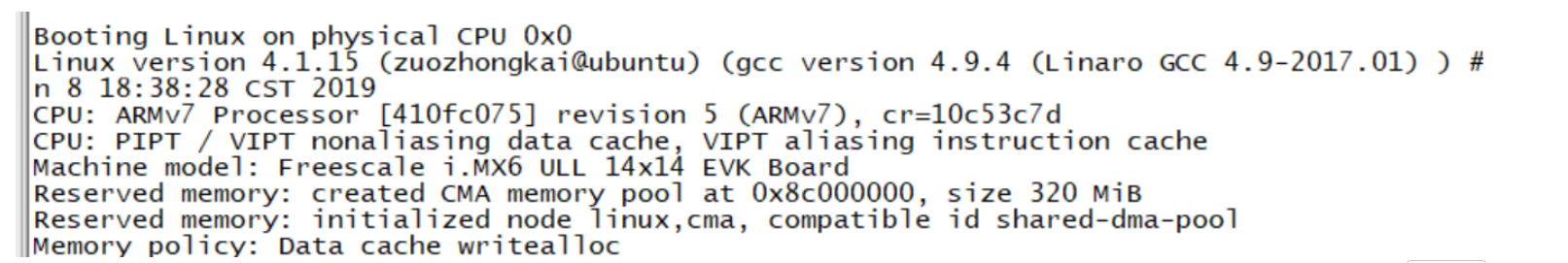 Linux 内核启动成功,说明我们已经在 NXP 提供的 Linux 内核源码中添加了I.MX6UL-ALPHA 开发板。