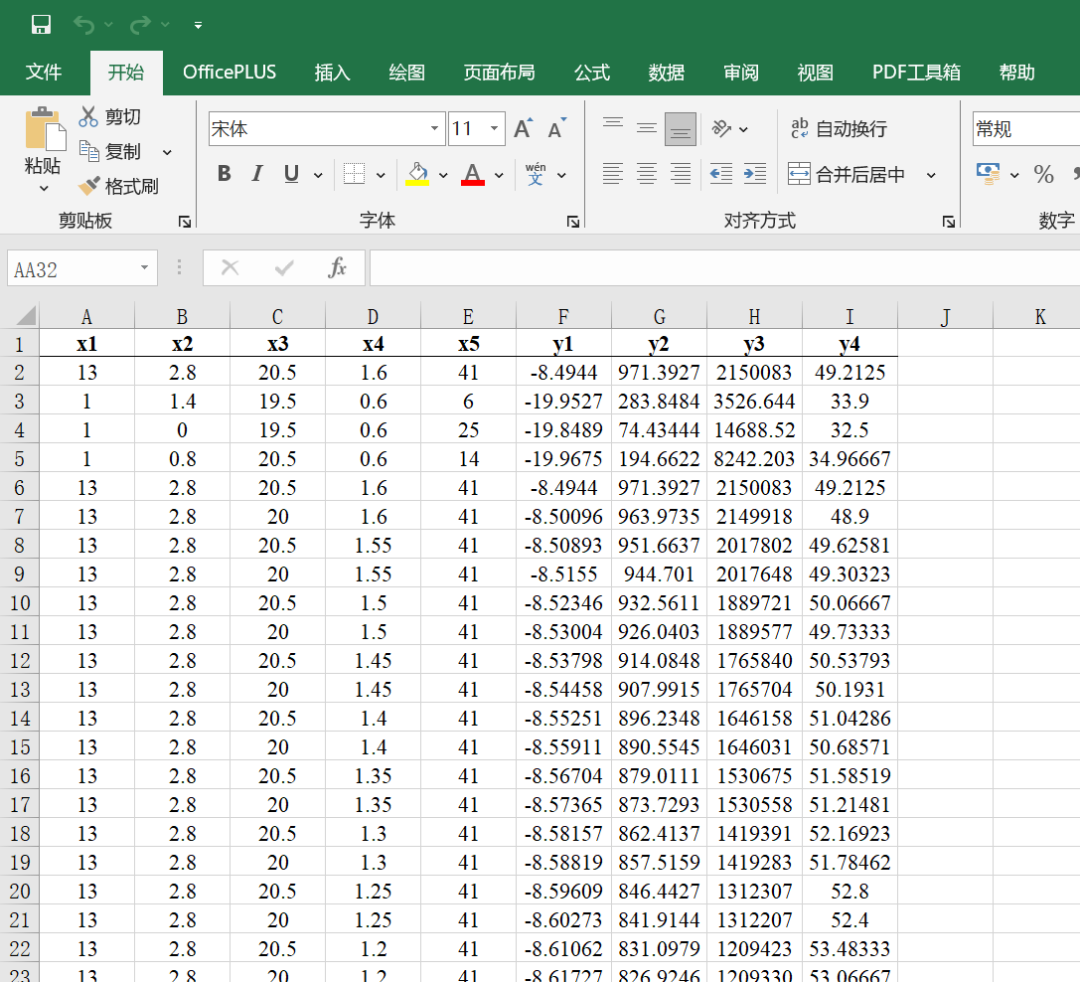 本期给大家带来的数据是一个工艺参数优化的数据,数据已经进行了脱敏处理,因此用x1-x5代表特征,y1-y4代表输出,也就是5个特征4个输出的问题,这样也方便大家替换成自己的数据。