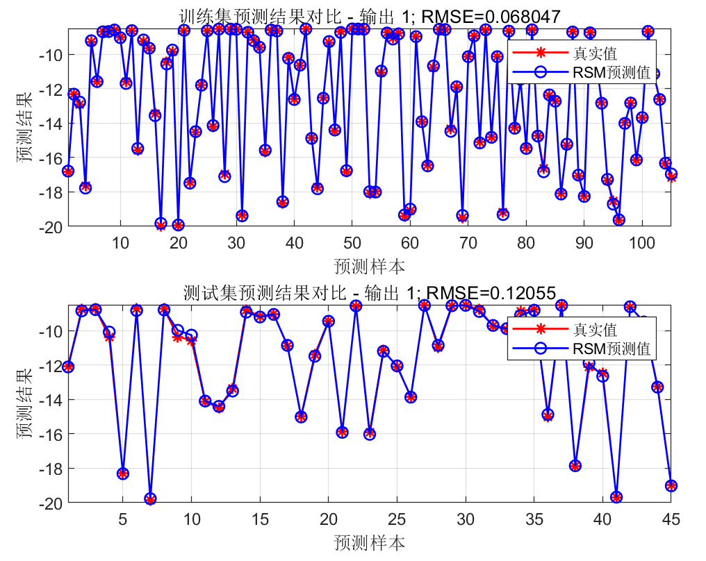 2)响应面法模型拟合与预测。利用训练好的模型分别对训练集和测试集数据进行预测,并对预测结果进行反归一化,并输出各个变量与特征之间的响应面公式。