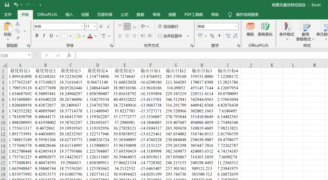 以及生成一个最优特征组合的Excel,方便大家自行选择合适的帕累托解集~