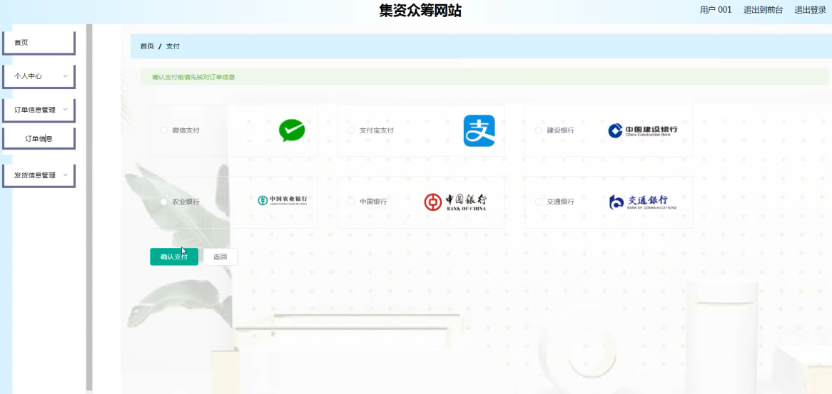 项目功能:用户,发布者,众筹产品,订单信息,产品类型,发货信息