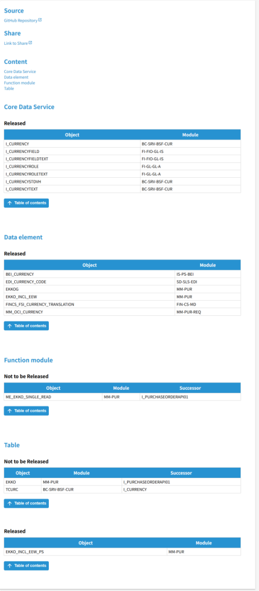 CRV是 GitHub 上的各种 JSON 文件,表示 SAP 系统(ABAP 环境、S/4 HANA 私有云和公有云、S/4 HANA 本地部署)中已发布对象的当前状态。如果您想使用新的 ABAP 云开发模型,您只能访问已发布的 API。该仓库提供了关于现有对象的各种信息,说明您是否可以在 ABAP 云中使用它们,或者是否存在继任者。CDS 视图尤其用于表的领域;在这里,您始终需要了解可以使用哪个继任对象以获取相关信息。