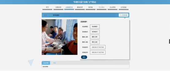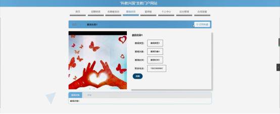 首页展示:提供支教项目的最新动态、新闻资讯、志愿者活动信息等,方便用户快速了解平台的核心内容。