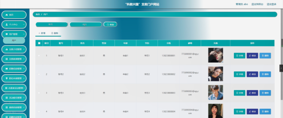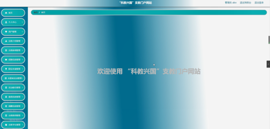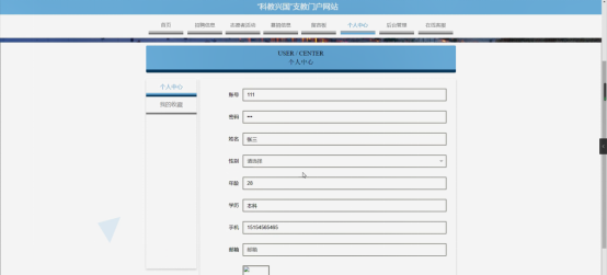 用户信息的添加和管理,“科教兴国”支教门户详细信息添加和管理和文档信息添加和管理以及网站信息管理,这些都是管理员的功能。
