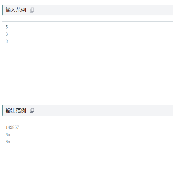 3.考虑到多组输出,需要在输出对应数字或未在范围内找到输出“No”后换行。