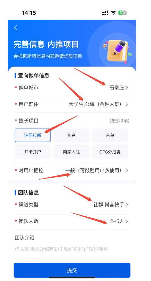 打开“我的”界面,点击“完善信息”,参考以下案例步骤完善你的个人信息即可.