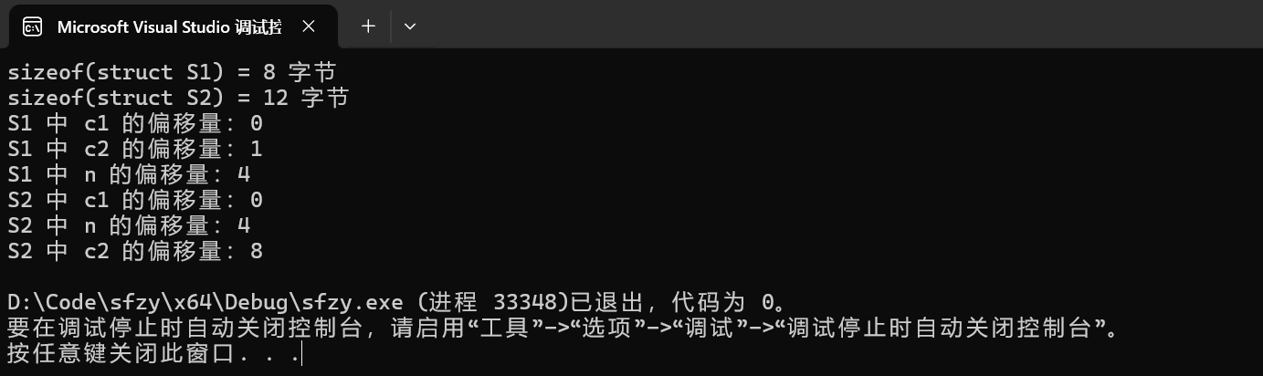 // 此时sizeof(struct S) = 6字节(1+4+1),无空间浪费