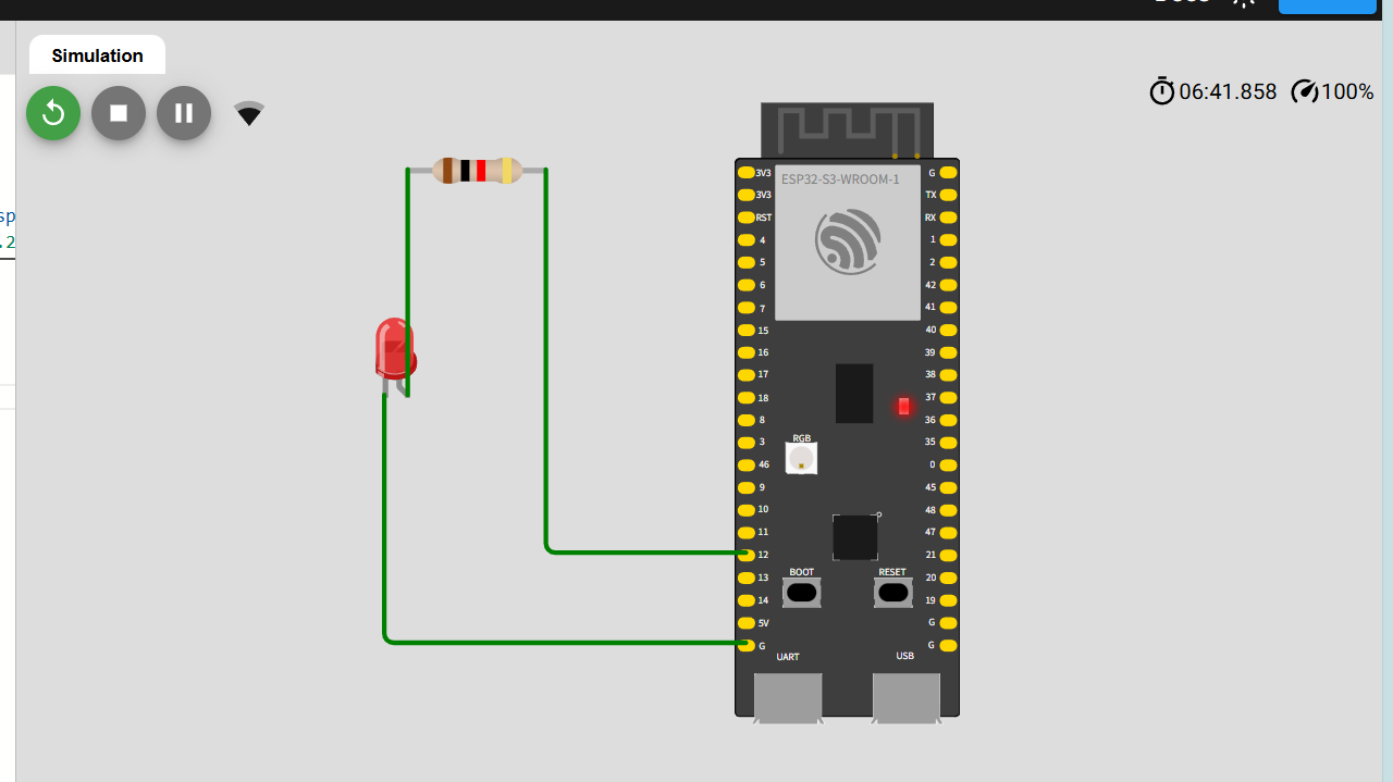 需要设备:ESP32S3,一个外部LED,一个电阻。