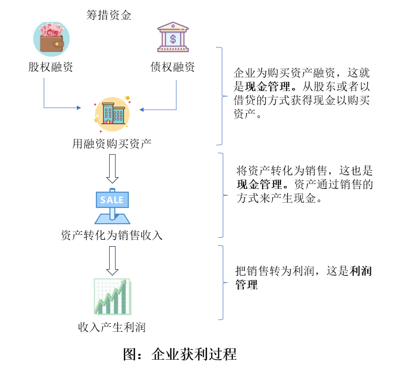 在这一过程中,前两个阶段关注的核心都是现金管理:一方面是获得现金以购买资产,另一方面是利用这些资产通过销售重新获得现金。只有最后一个阶段,才是真正意义上的利润管理。