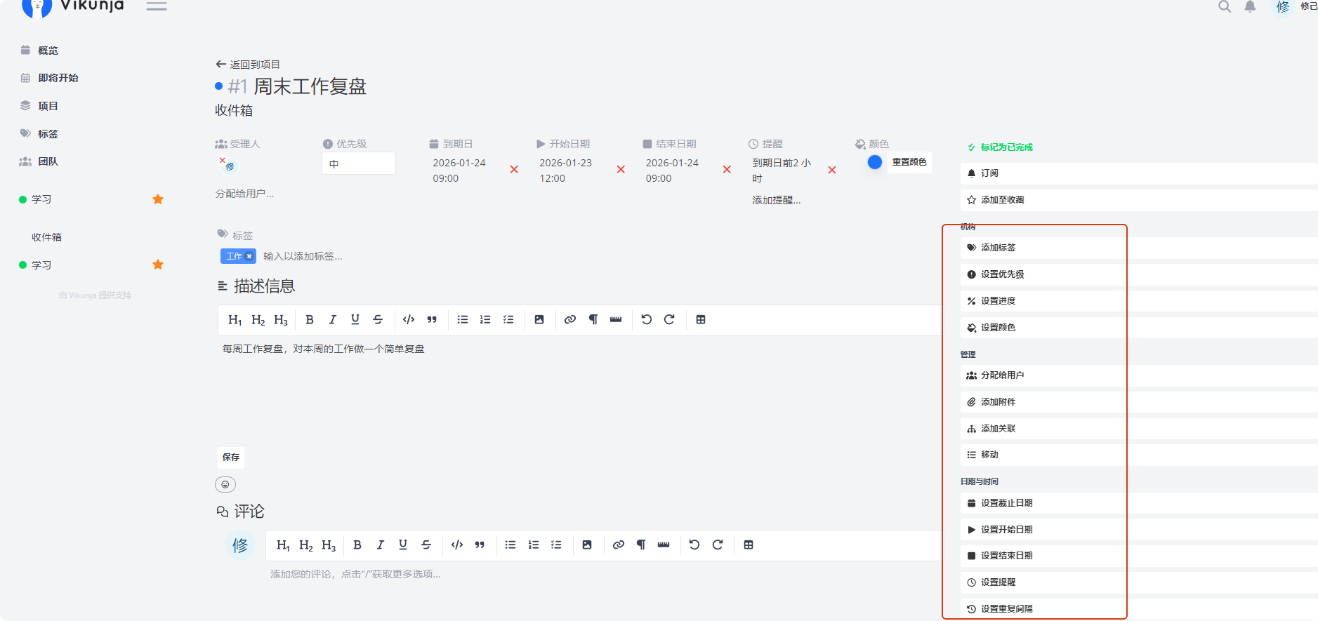 - 评论系统:在任务上进行讨论