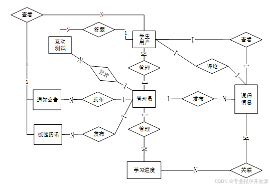 对于管理员来说,核心需求在于高效管理系统资源和用户活动。这包括对系统内用户进行有效管理,确保平台的安全性和稳定性;维护并更新丰富的课程信息和校园资讯,保证内容的时效性和准确性;监控和分析学生的学习行为数据,为教学策略调整提供依据;管理互动问答和测试模块,确保交流环境的健康有序;并通过后台数据分析工具掌握试卷平均分统计、考试成绩统计等关键指标,以便于优化教学质量和资源配置。同时,为了提高系统的易用性和可扩展性,管理员还需要一套便于操作的界面和工具来进行日常管理工作。
