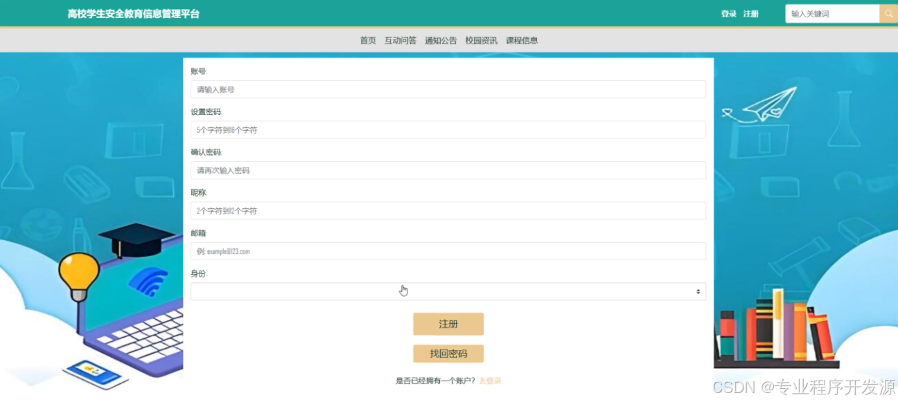 Keywords: safety education for college students; safety education information management platform; Spring Boot; Java