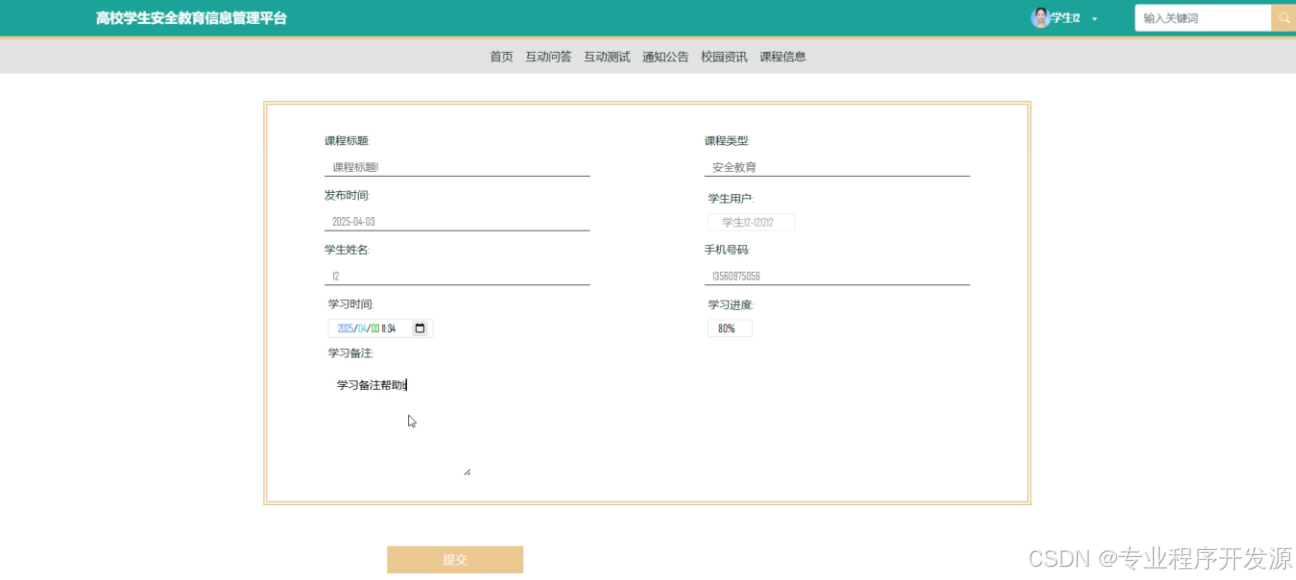 学习进度提交界面展示如下图5-14所示。