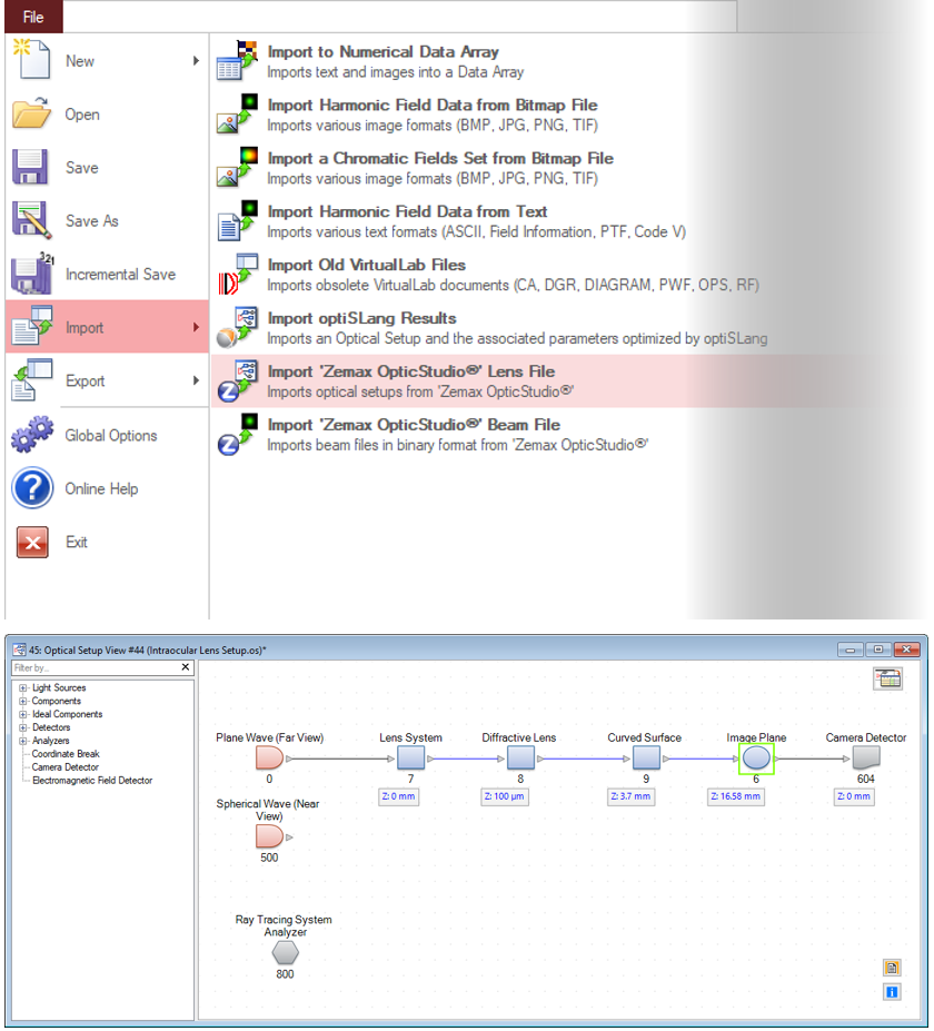 VirtualLab Fusion 提供了导入光学设置并将其合并为单一光学设置配置的功能。