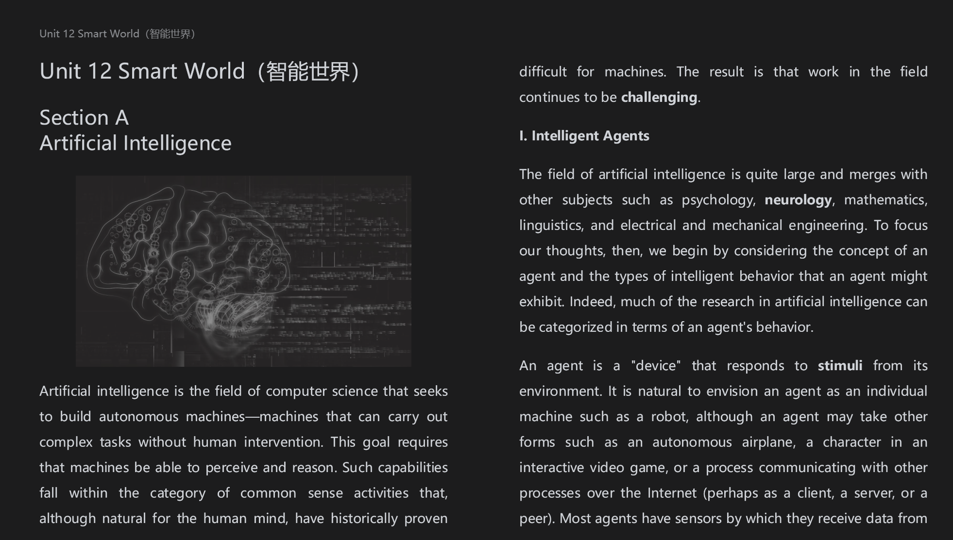 人工智能是计算机科学的一个领域,是为了创建可以在没有人类干涉时执行复杂任务的自动化机器。这个目标需要机器能够感知和推理。这个能力属于常识活动的种类,尽管这是人类思维的本能,但在历史上也已经证明这对机器来说很难。这个结果是该领域的工作依旧充满挑战。