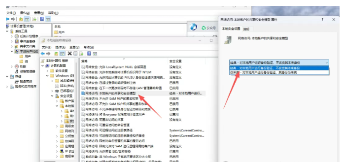 设设置网络访问:本地账户的共享和安全模式为典型:本地用户作为自身进行验证。