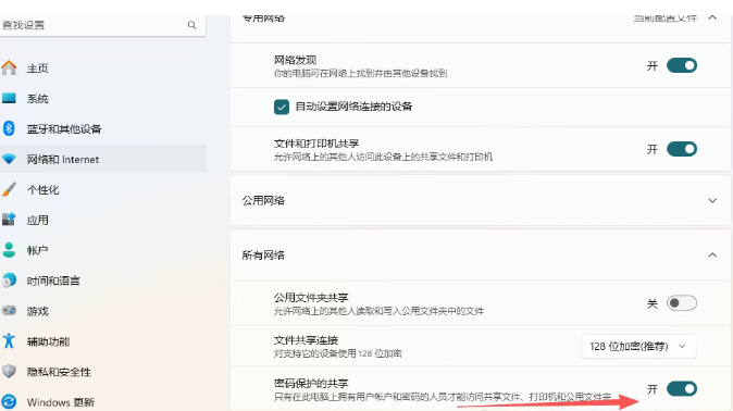 密码保护共享也应该打开。