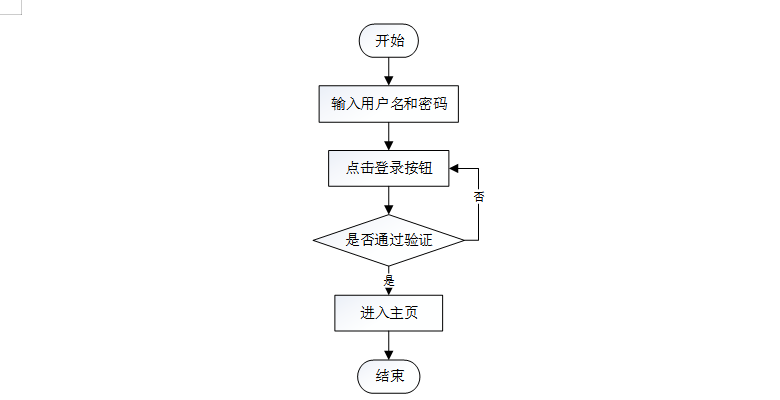 用户在登录的过程中,运行程序进入系统登录界面,将用户名和密码输入到系统上。当密码输入错误时,系统会提醒用户重新输入。用户登录流程图如图3-4所示。