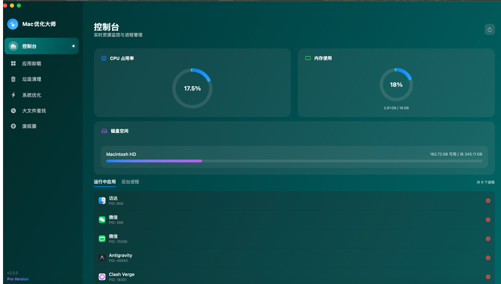 Mac优化大师是一款专为 macOS 设计的系统优化工具,采用现代化的 SwiftUI 界面,提供六大核心功能模块: