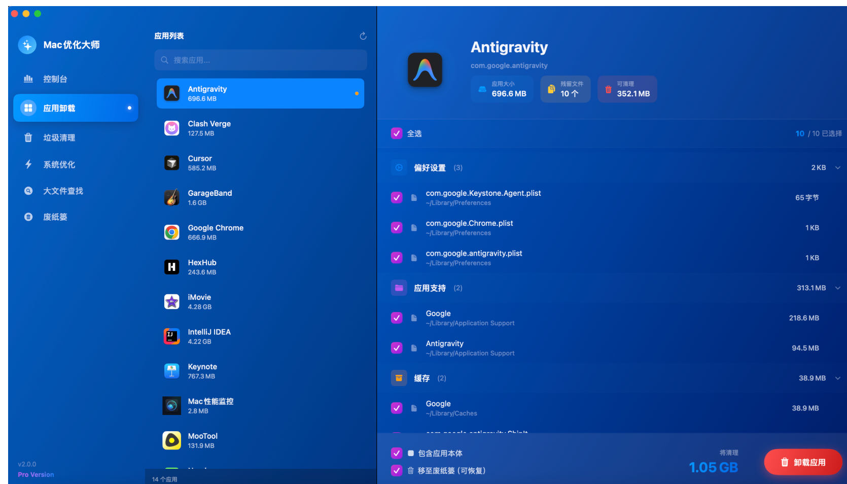 - 完全卸载 – 一键删除应用及所有相关文件