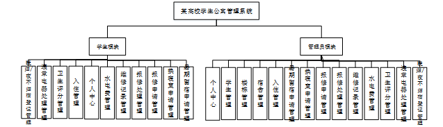 根据上文中对用户需求的一系列综合细致的分析,针对本某高校学生公寓管理系统,得到一个如图4-1所示的宏观的总体功能结构图。