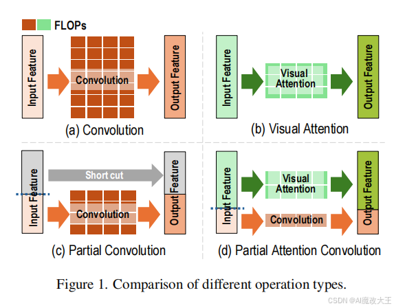 - 突破传统 “串行融合” 思路:将卷积与注意力并行应用于不同通道,而非传统的 “卷积后接注意力” 或 “注意力后接卷积”,大幅降低推理 latency;