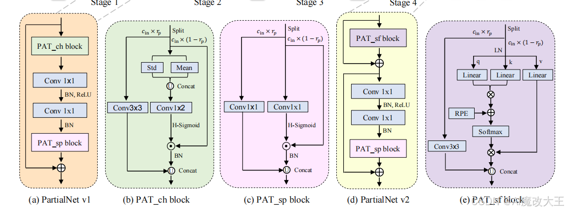 基于上述原理,PATConv 可灵活组合卷积与不同类型注意力,衍生出三种专用块,适配网络不同层需求: