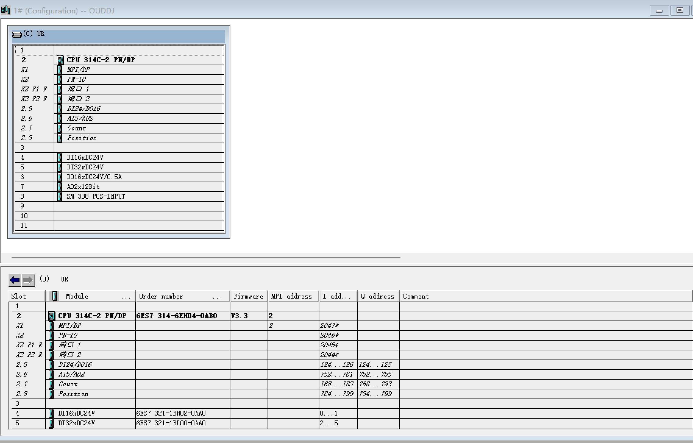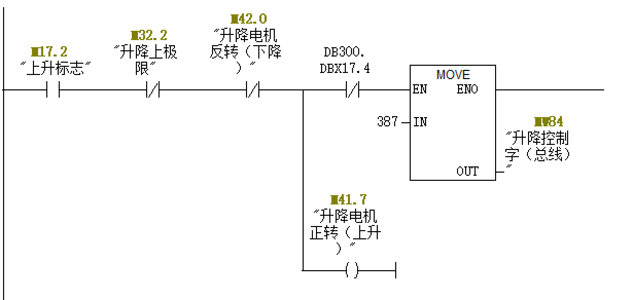 1、堆垛机控制系统STEP7硬件组态如下图 CPU CPU 314C-2 PN/DP 6ES7 314-6EH04-0AB0 SM 338 POS-INPUT AO2x12Bit 6ES7 332-5HB01-0AB0 2、堆垛机控制系统STEP7内部变量 3 \”升降控制字(总线)\” 4下降标志
