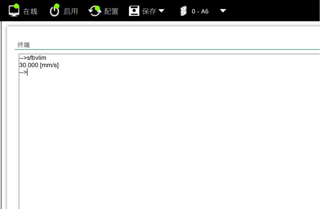 3.对速度进行了限制,在终端,输入sfbvlim查看最大速度限制,然后把sfbvlim=30,把最大速度进行了限制。我们实际速度也不需要很快。